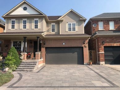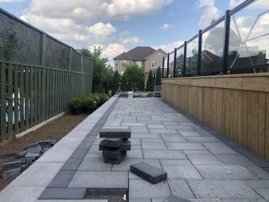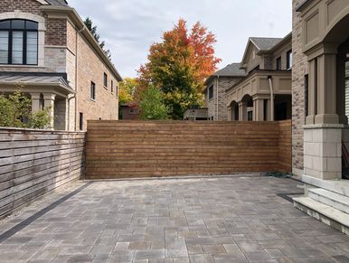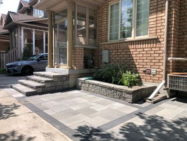Backyard paving steps retaining wall flower bed in Richmond Hill